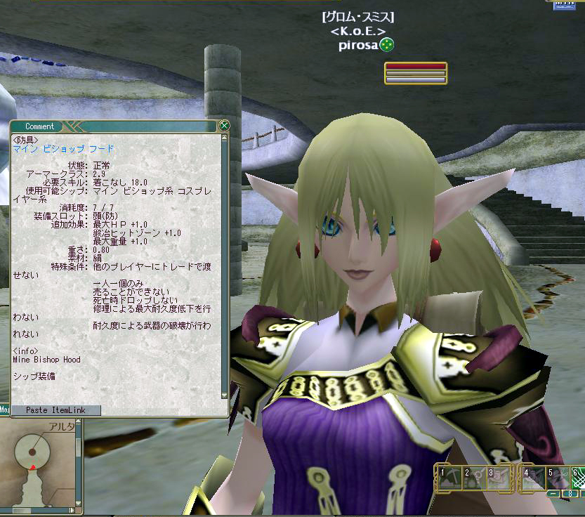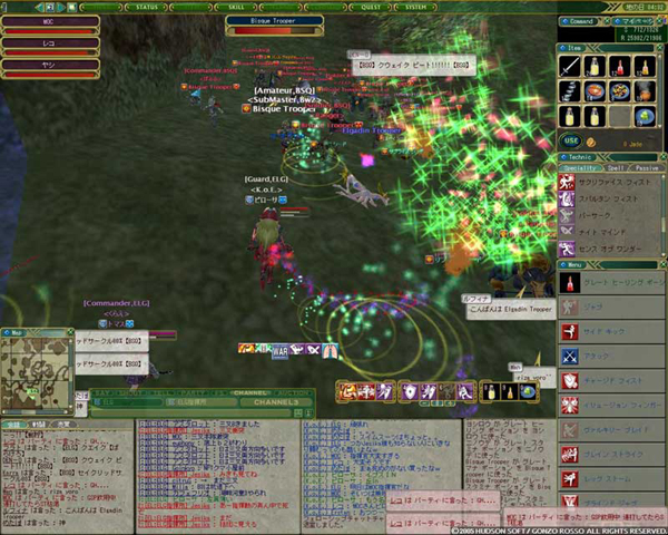 キー操作にも慣れてきて、マウスとの使用比率は半々といったところ。本隊では敵をタゲってマウス使用ですね。PTでは100%両手キー入力。キー操作の方が強いですね。